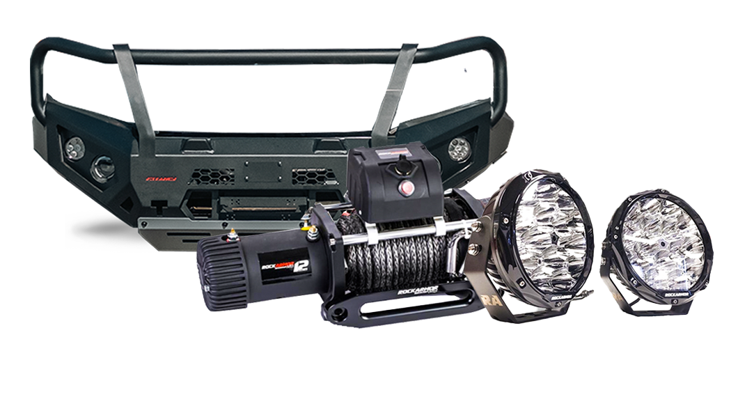 Since 2019, the Rockarmor Frontal Pack has been one of Australia's most trusted and sought-after package deals among 4WD enthusiasts. Featuring a robust Rockarmor Bull Bar, a powerful 12,000lb Winch, and a pair of high-performance R85 Driving Lights, this comprehensive package provides everything you need to enhance, protect, and prepare your 4WD for any off-road adventure.